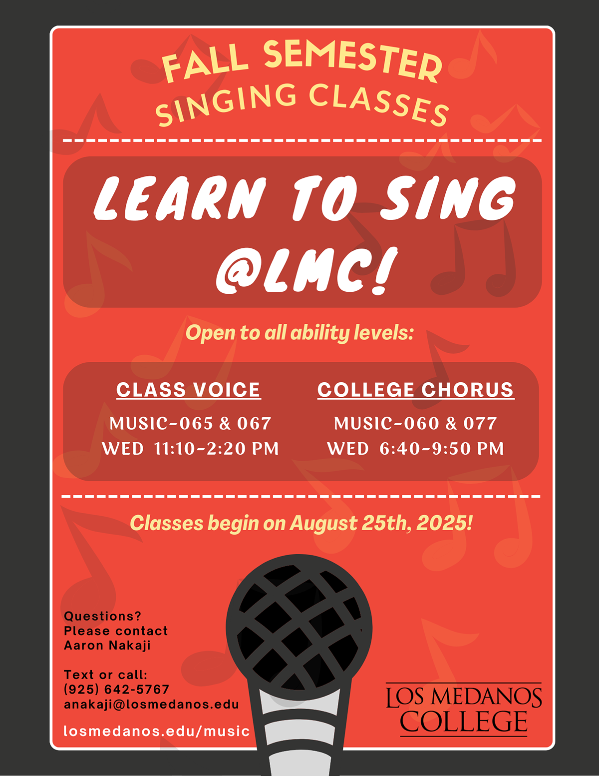 Performing choral music from the “Renaissance” to the “Contemporary Era”, the Los Medanos Chamber Chorale is a highly competitive audition chorus. Honored with the East County NAACP‘s 2014 “Musical Excellence Award”, the members of the Chamber Chorale are generally comprised of the Music Department’s Vocal Music majors.